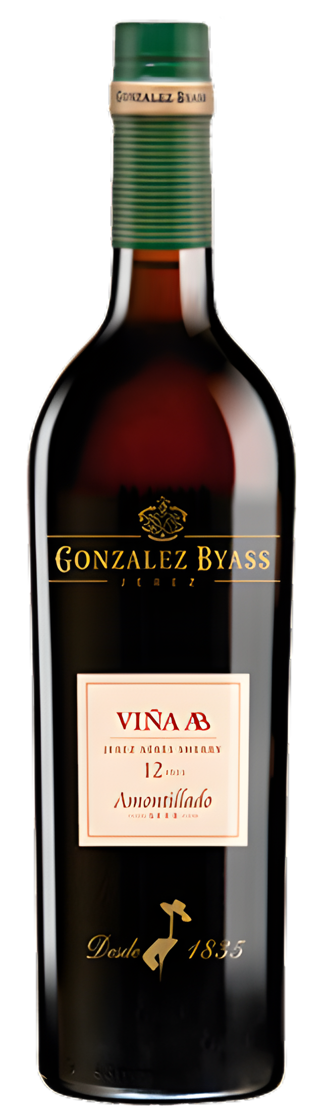 Viña AB is a very young amontillado that has experienced two types of aging: biological and oxidative, with a minimum of 12 years in American oak casks, following the traditional criaderas and solera system.